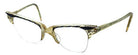 Small, but beautifully shaped. This “semi-rimless” french frame is a rare find. There is a “Sammes” mark on the inside of the temple, but we have not been able to find out anything further.