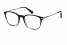 One of the new Savile Row Titanium frames, this traditional rectangular shape, has been brought up-to-date using lightweight acetate for the front, titanium sides and classic colours. The final touch being the “etching” on the sides: a reminder of the Algha Savile Row heritage finishes.
