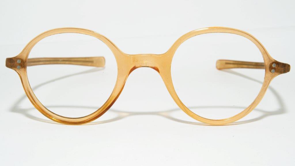 This fully restored, sherry/crystal frame is in beautiful condition. A lightweight frame with relatively rare straight sides, is nearly round.