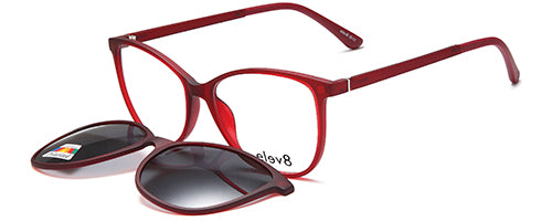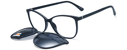 Revamp your eyewear game with our innovative duel glasses/sunglasses design featuring a magnetic, detachable sunglass attachment. enjoy the benefits of polarised lenses and effortlessly switch from regular glasses to stylish shades with a simple frame conversion.