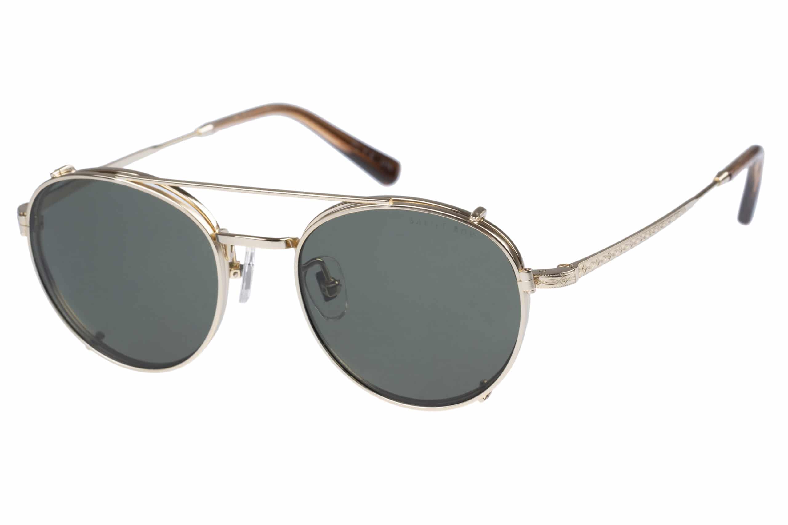 This sunglasses “clip-on” has been made specifically for the Savile Row Titanium range SRO 009 frame. This is the compromise frame taken from the original iconic Savile Row Panto and Savile Row Centre Joint frames.