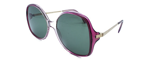 A great example of a vintage sunglass. The front has a clear crystal bridge which fades into deep purple at the outside.