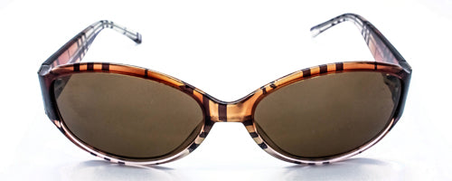 Easily recognizable Burberry looking plastic frame in two tone brown, fading to clear crystal tips.